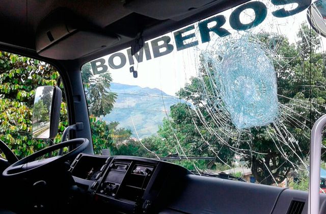 Según el capitán Gustavo Alberto Callejas, comandante del Cuerpo de Bomberos Voluntarios de Yarumal, cuando llegaron al lugar, una de las personas concentradas en ese punto les lanzó un ladrillo y rompió el parabrisas del vehículo.