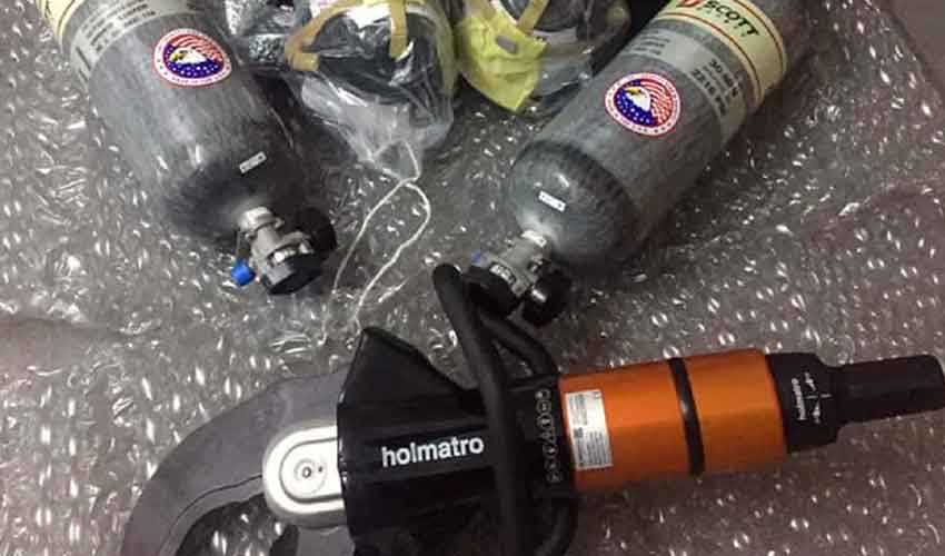 Neuquén.- Los Bomberos Voluntarios de Junín de los Andes adquirió moderno equipamiento. Se trata de una cizalla marca Holmatro, para vehículos pesados y dos equipos completos de protección personal para incendios marca Scott (máscaras, arnés, cilindro de carbono), que sirven «para un mejor desempeño en nuestros servicios», se indicó desde Bomberos.