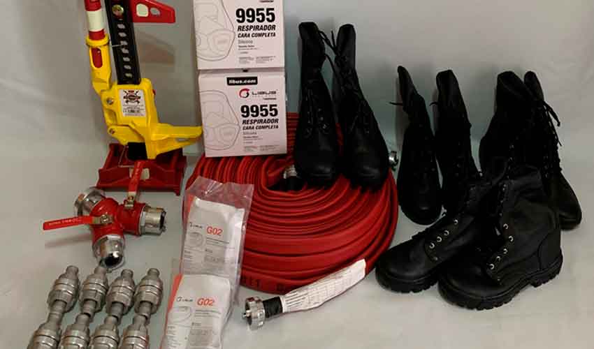 Se trata de MANGAS ALEMANAS 1″, BORCEGOS TACTICOS, MASCARAS LIBUS 9955, FILTROS G02, HI LIFT 60″, ACOPLES STORZ 1″ y BIFURCADOR 38″ CON REDUCCION 1″ STORZ, compra realizada a la empresa La Union equipamientos.