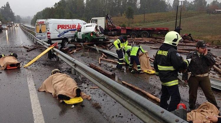 Al menos cuatros bomberos y dos carabineros habrían resultado heridos tras el choque de un camión contra equipos de emergencia que asistían a vehículos que anteriormente colisionaron en el kilómetro 741, en las cercanías de la comuna de Loncoche.