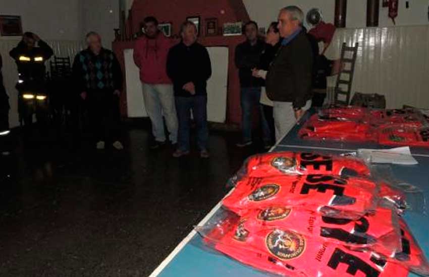 Buenos Aires.- Durante la academia semanal de los días lunes, los Bomberos Voluntarios de General La Madrid fueron sorprendidos con un obsequio muy especial. Los señores Jorge Baudri y Osvaldo Villegas hicieron entrega de una chomba para cada uno de los integrantes del cuerpo activo.