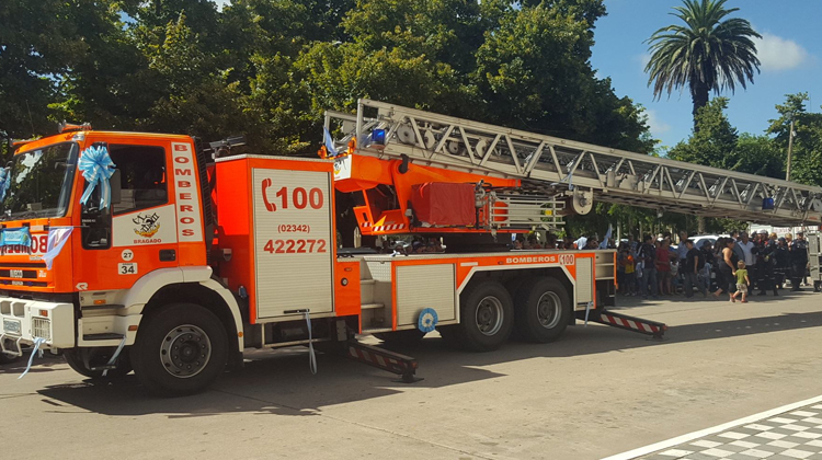 Buenos Aires.- El Palacio Municipal fue el escenario para realizar la presentación de la esperada escalera de Bomberos Voluntarios de Bragado, hallándose presente el Intendente Municipal, Vicente Gatica; el presidente de Bomberos, Martín Artola; el Jefe del Cuerpo, Abel Lotúmulo; el representante de la empresa