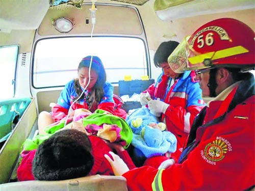 PARTO RÁPIDO. En el sector de Totoral se subió a la camilla de la ambulancia de bomberos a la gestante Marisol Huamaní (30), a quien las contracciones se le aceleraron, naciendo en pocos minutos un bebé varón.