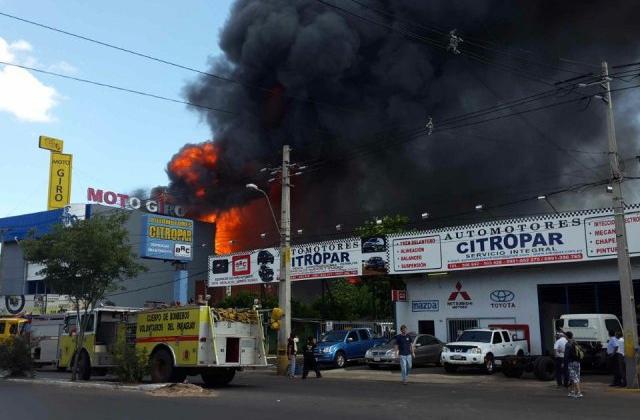 El capitán Rafael Valdez confirmó que aproximadamente a las 17:00 horas se logró controlar el incendio registrado en el local “Moto Giro”.