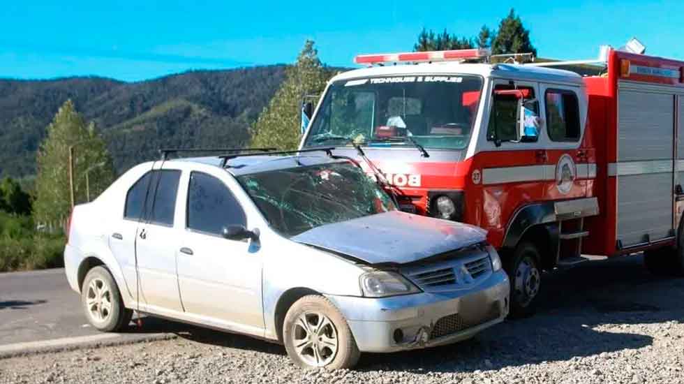 Los bomberos se encontraban camino a otro accidente vehicular en el ingreso al cerro Tronador y el choque se produjo cuando el auto particular dobló sin mirar.